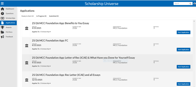 Scholarship Universe allows for legitimate external scholarships to be included and their information available for students. If you are a community partner who would like to share your scholarship with our students, please email ac.scholarships@mcckc.edu.